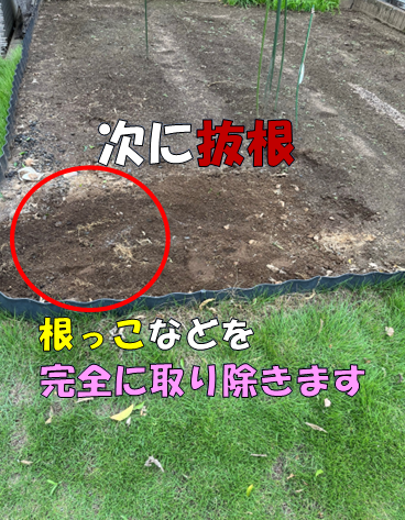 抜根 ・・・伐採後に残った切り株や根を地中から完全に取り除く作業のこと